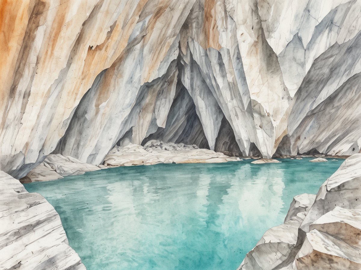 Die Formen und Strukturen der Marmorhöhlen entfalten sich in einer faszinierenden Komplexität, die sich aus zahlreichen Erosionsprozessen und der Wechselwirkung von Wasser mit dem Gestein ergibt. Die Höhlen sind geprägt von sanften Wellenlinien, die sich über die Wände ziehen, und von schroffen, kantigen Ausbuchtungen, die den Eindruck erwecken, als wären sie von einem überdimensionalen Künstler handgearbeitet worden. Manchmal scheinen die Höhlen in verschiedene Spalt- und Klüftsysteme zu zerfallen, die sich wie ein filigranes Netzwerk durch die massiven Marmorfelsen ziehen. Diese Strukturen sind oft das Ergebnis von jahrelanger chemischer Erosion, bei der das Wasser Mineralien abträgt und gleichzeitig neue Formen entstehen lässt.