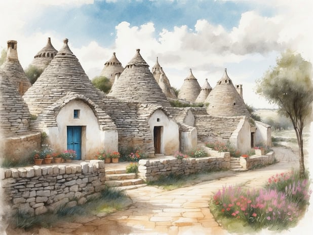 Alberobello ist eine charmante Stadt in Apulien, Italien. Bekannt für ihre einzigartigen trulli-Häuser, die runden, weißen Steinhäuser mit kegelförmigen Dächern sind. Diese spezielle Bauweise macht Alberobello zu einem beliebten Reiseziel für Touristen aus aller Welt. Die engen Gassen und verwinkelten Straßen laden Besucher ein, die Geschichte und Kultur der Region zu entdecken. In den traditionellen trulli-Häusern können Besucher oft lokale Handwerkskunst und traditionelle Gerichte erleben. Die umliegende Landschaft bietet zudem eine atemberaubende Kulisse für Spaziergänge und Wanderungen. Alberobello ist ein Ort, an dem man die traditionelle apulische Architektur und Lebensweise hautnah erleben kann. Ein Besuch in dieser einzigartigen Stadt ist ein unvergessliches Erlebnis.